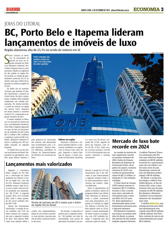 BalneárioCamboriú novos empreendimentos vão ultrapassaresse valor.O edifício Edify One, com