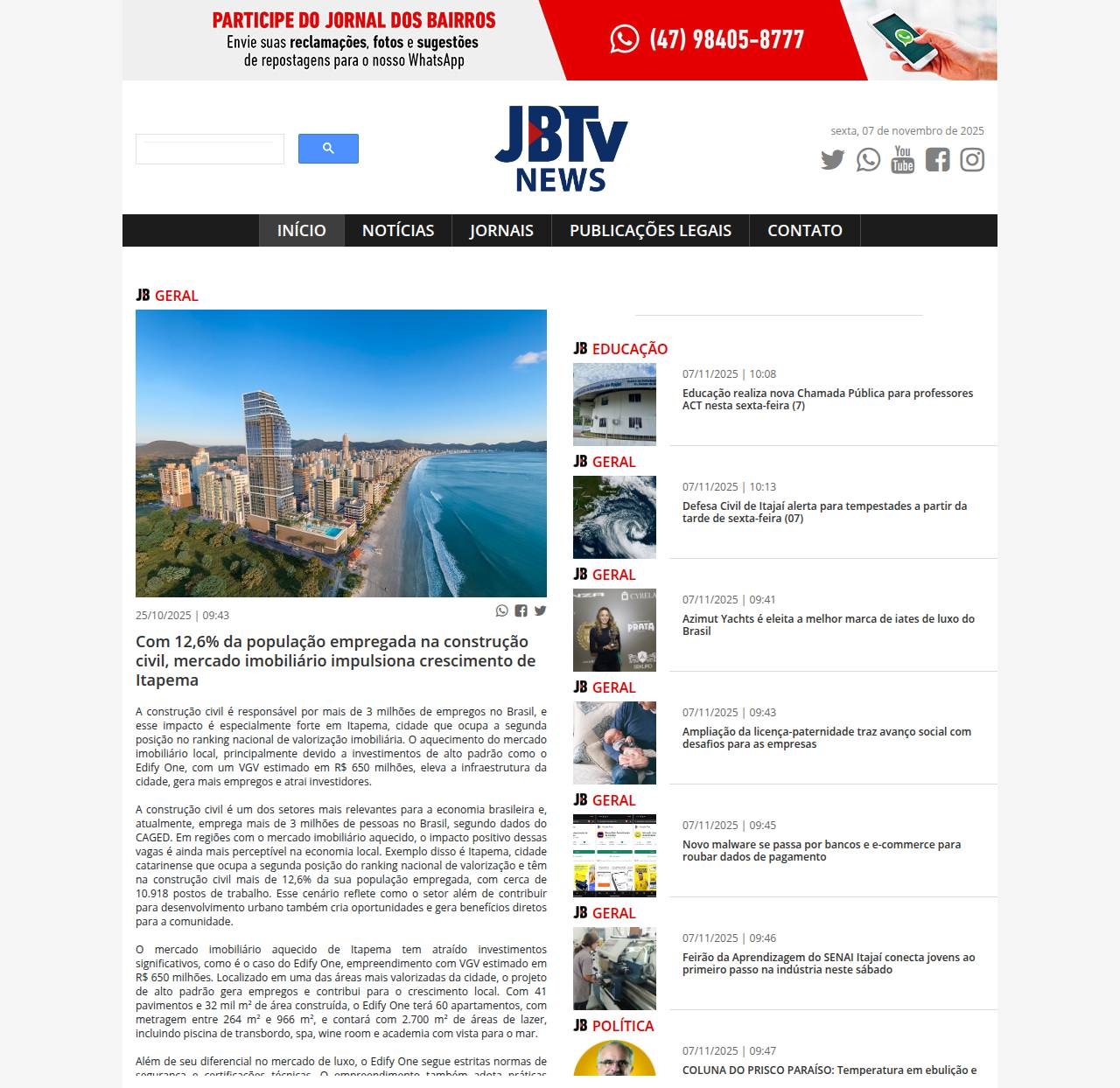 24/10/2025 - Jornal dos Bairros Itajaí
