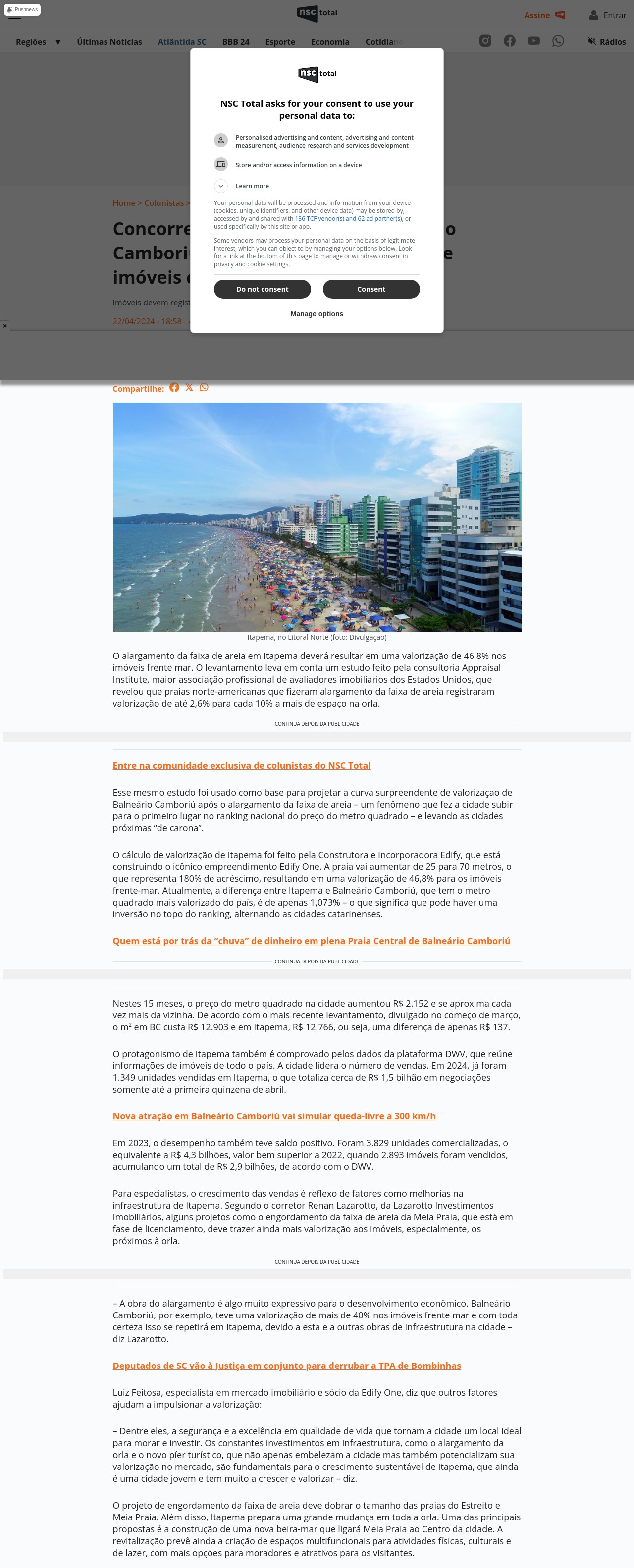 Concorrente segue rastro de Balneário Camboriú e prevê supervalorização de imóveis com "nova" praia