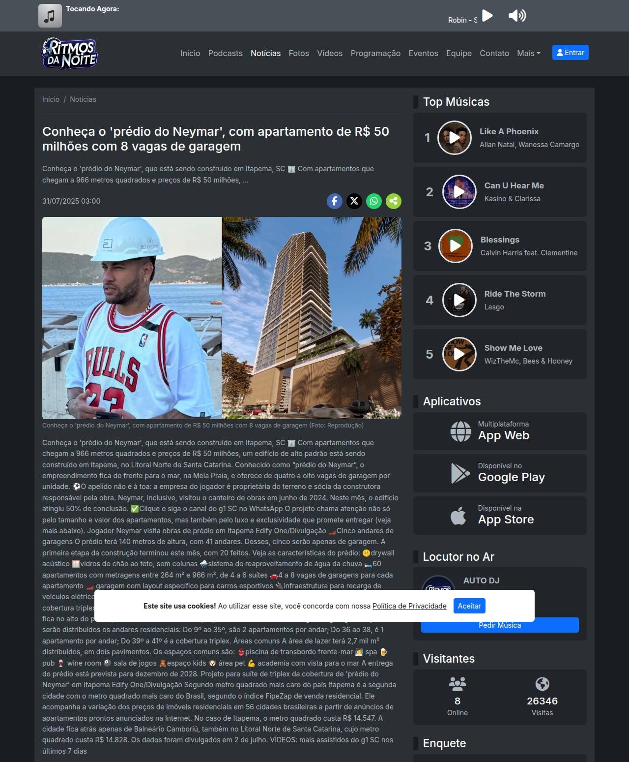 Conheça o 'prédio do Neymar', com apartamento de R$ 50 milhões com 8 vagas de garagem Rádio Ritmos da Noite