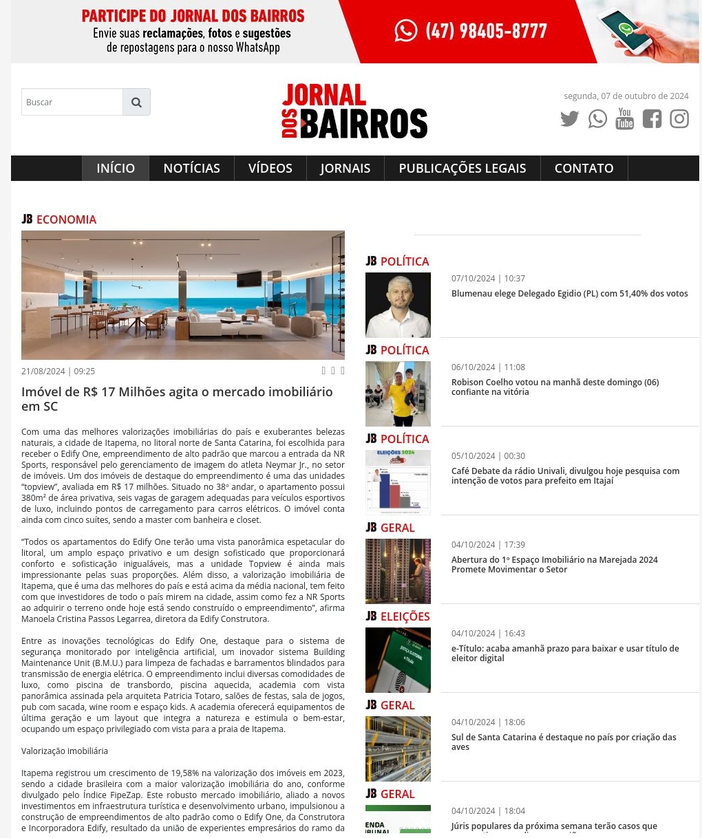 21/08/2024 - Jornal dos Bairros Itajaí