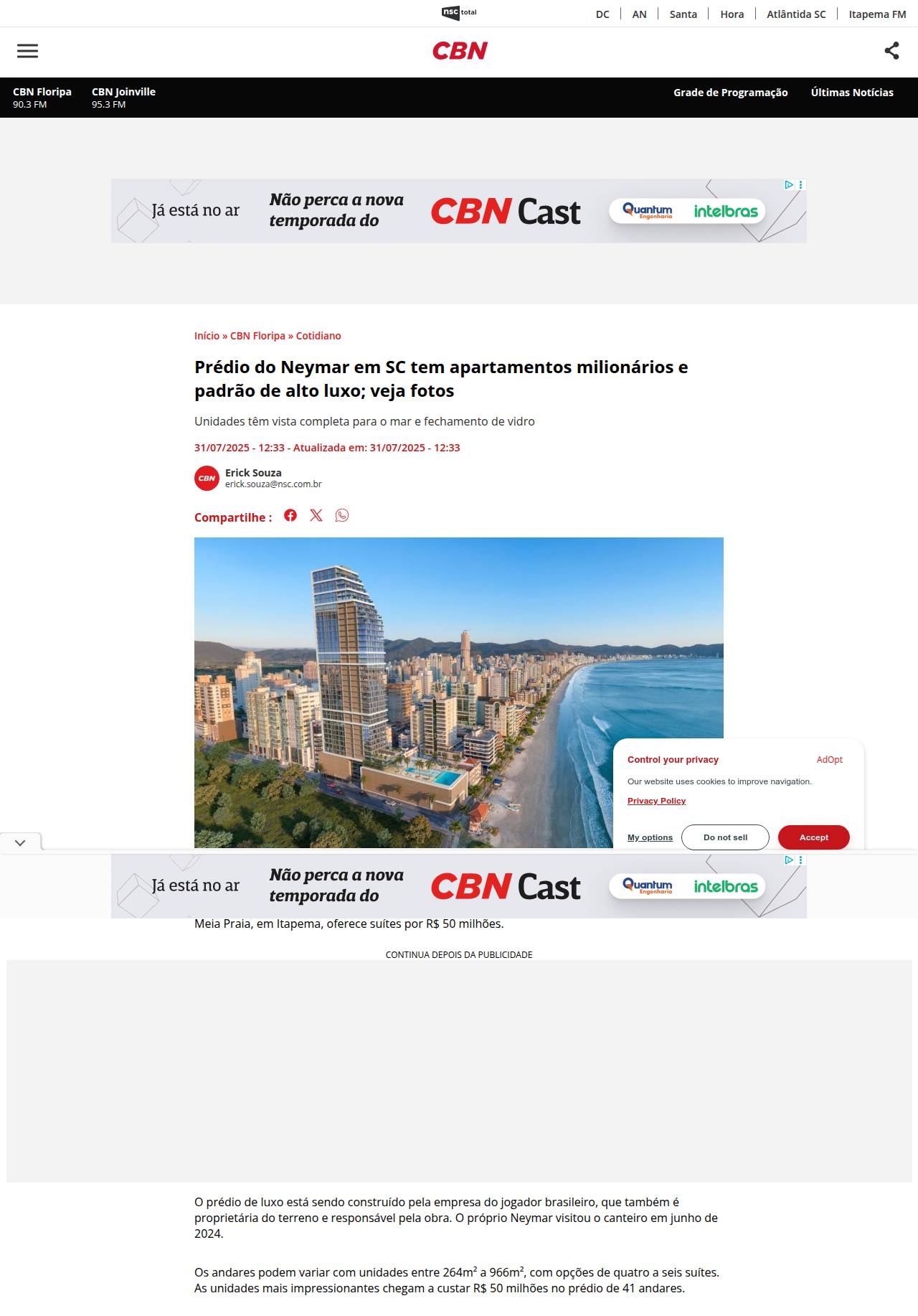 31/07/2025 - Rádio CBN Joinville 95.3 FM
