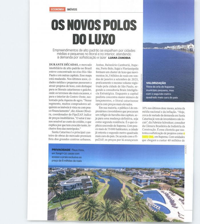projetos como oEdify One, em Itapema. Com unidadesque chegam a custar 40 milhões dePRIVACIDADE